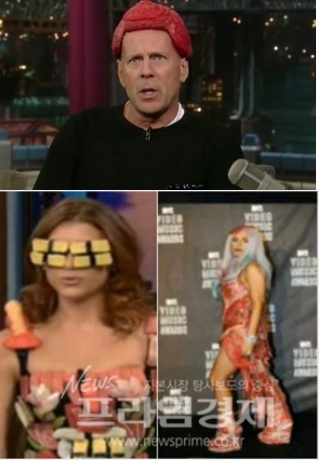 레이디가가 ‘생고기패션’ 열풍?…케이트윌시 이어 브루스윌리스 까지