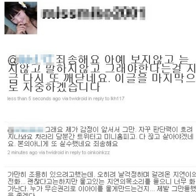 정가은, “내 손을 잘라버리고 싶다”…트위터+미니홈피 중단 선언