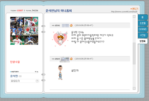 기아 윤석민, 롯데 조성환 머리맞춰…미니홈피 테러