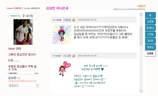 김남일 부인 김보민 미니홈피, 경기 직후부터 몸살