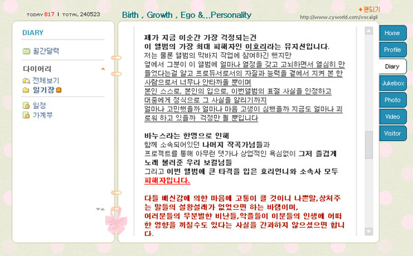 자해시도 윤석민, 미니홈피 통해 "후회합니다."