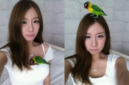 푸쉬걸 한지은, 앵무새 사진 트위터에 공개 눈길