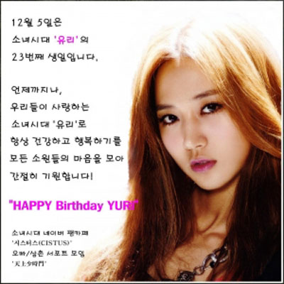 “소녀시대 유리의 23번째 생일을 축하합니다”
