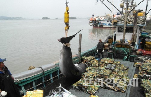 [포토] 어선에 혼획된 1.5톤 밍크고래