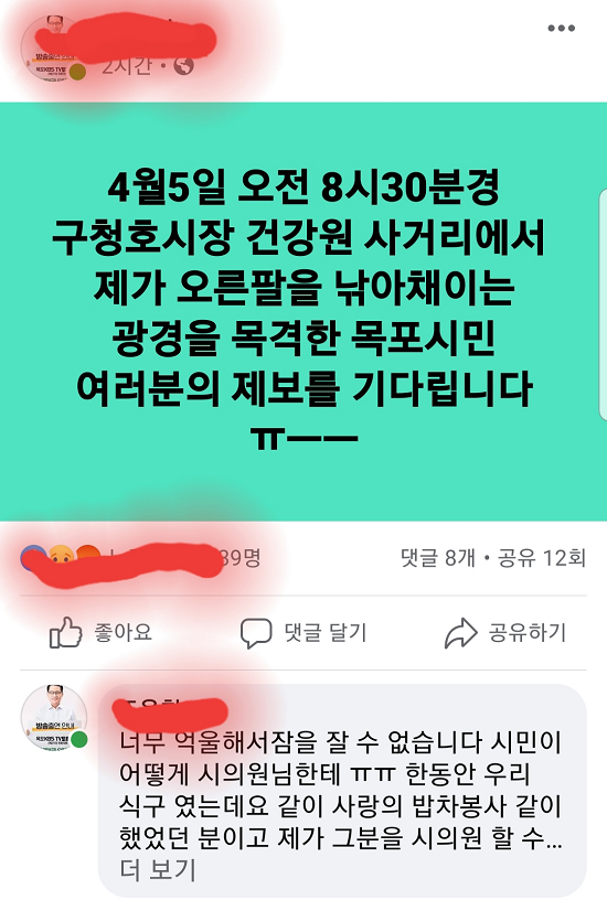 목포시의원, 박지원 후보 운동원 폭행 파문