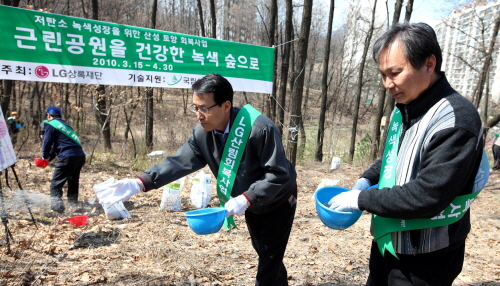 LG ‘도심숲 흙살리기’ 11년···잣나무 210만 그루 효과