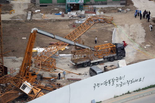 LH아파트, 공사현장 타워크레인 무너져 '사망 3명'