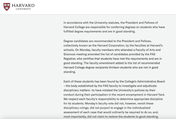 하버드대 졸업생 이탈 "대학측이 약속 어겼다"