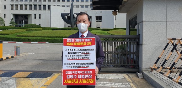 홍문표 의원, 김명수 대법원장 사퇴 촉구 1인 시위