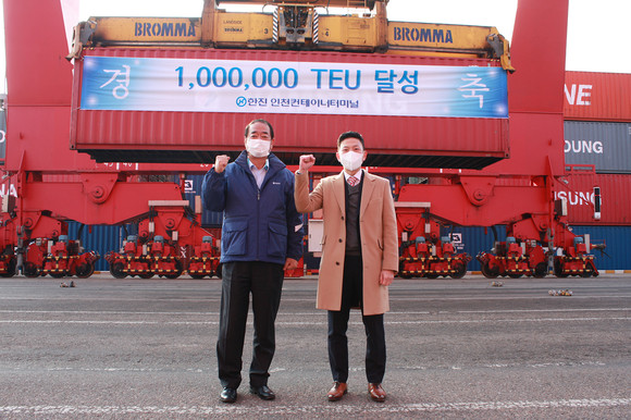 '인천항 최초' 한진 인천컨테이너터미널, 물동량 100만TEU 돌파
