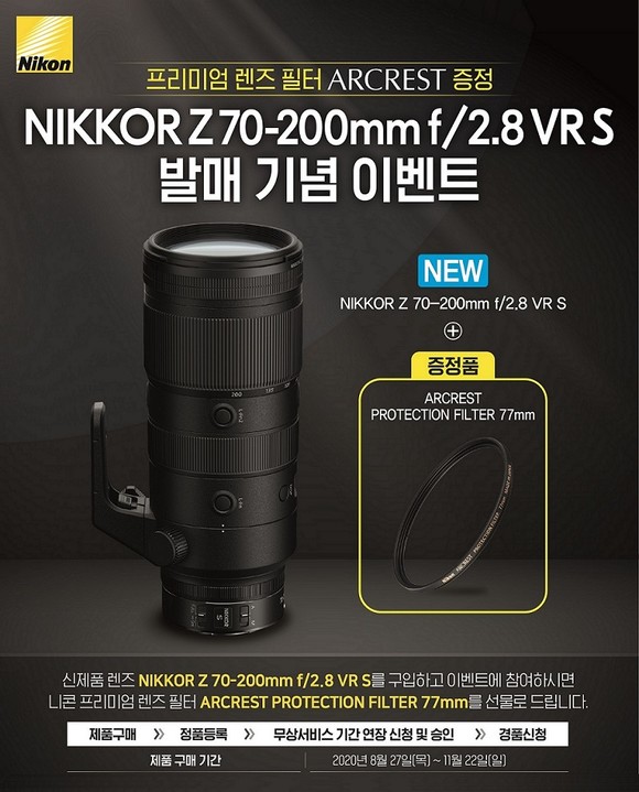 니콘이미징코리아 'NIKKOR Z 70-200㎜ f/2.8 VR S' 선봬