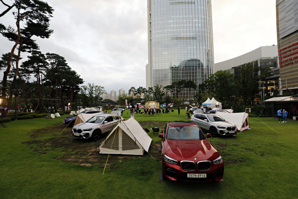 잠실 롯데월드타워 잔디광장서 'BMW 차박존' 운영