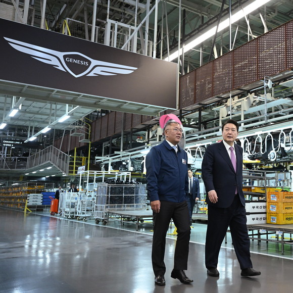 尹 대통령 '울산공장' 방문, 현대차 "올해 최대 생산·수출 자신"