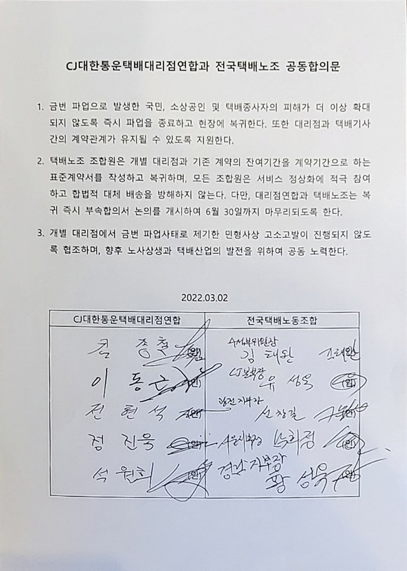 '태업 지속' 택배노조, 대리점연합 "황당 돌변은 국민 기만"