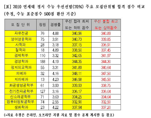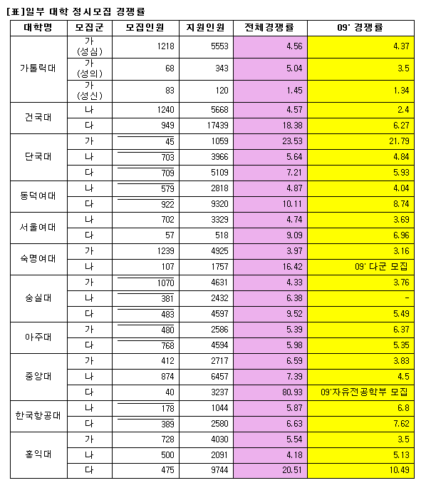 2010 정시 의예, 치의예, 한의예 경쟁률은