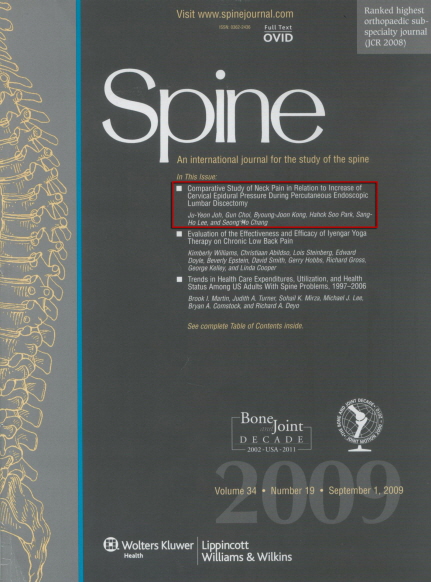 척추 치료법, 학술지 Spine 표지 장식