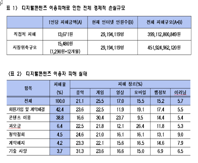 디지털콘텐츠 이용 피해 빈번