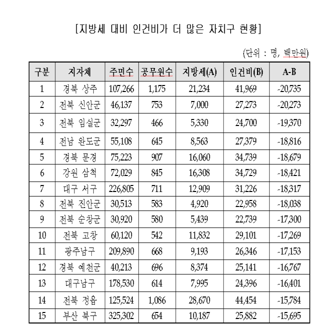 지방세로 인건비 충당도 어려워