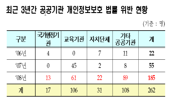 공공기관 개인정보 침해 '위험수위'