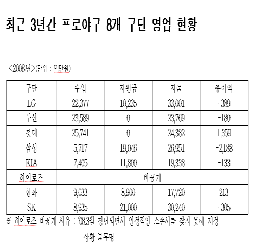프로야구단 재정 ‘빈익빈 부익부’