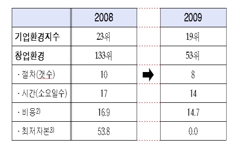한국 기업환경, 세계 10위권 진입