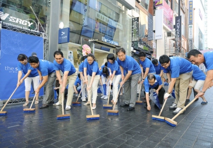 더 샘, 명동 거리 물청소로 차별화된 신고식