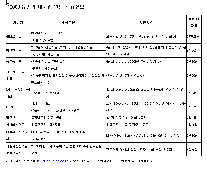 상반기 마지막 인턴채용에 나선 대기업은?