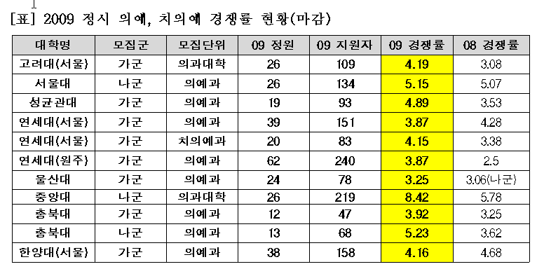 2009 연세대(서울) 정시 경쟁률 현황 분석