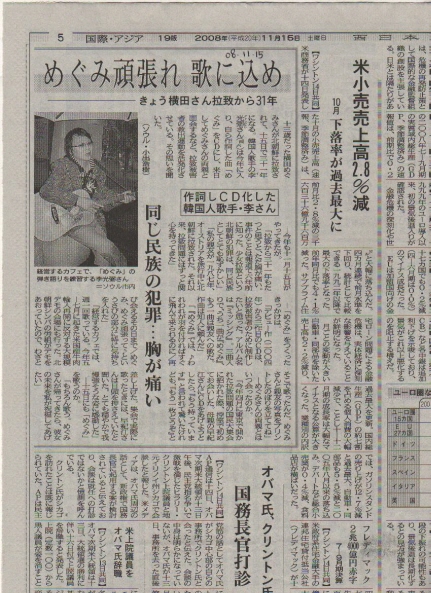 가수 이광필, 메구미 납북 31년 맞아 일본 언론에서 대서특필