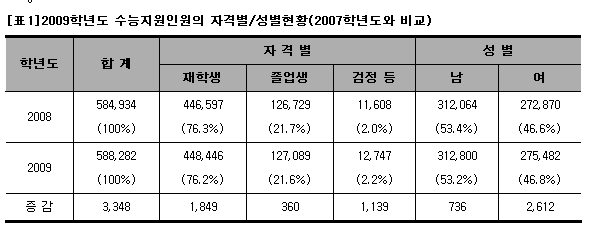 2009년도 수능 ‘58만 8000여 명’ 응시
