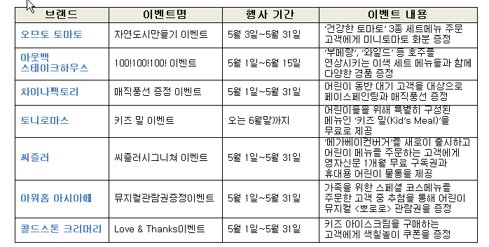 외식업계, 가정의 달 이색 이벤트 풍성