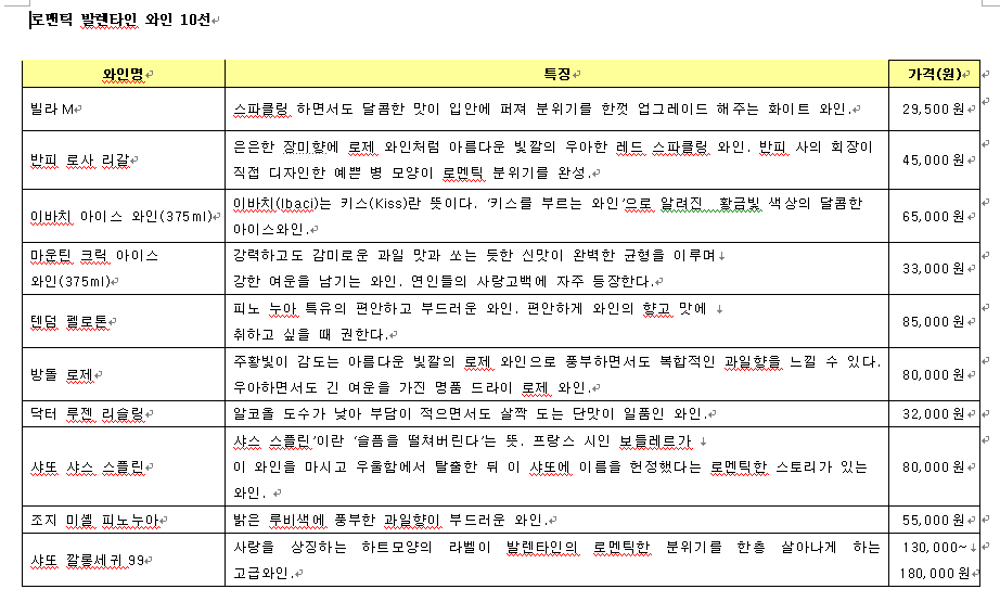 발렌타인 데이, 로맨틱 와인 10선