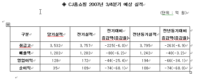 CJ홈쇼핑, 3분기 매출액 1,202억 원