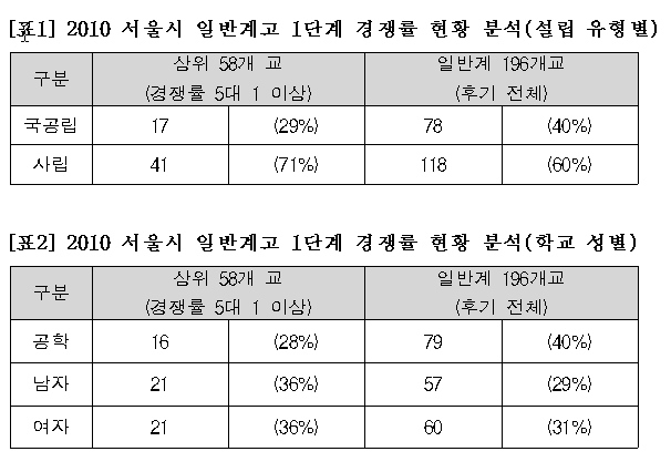 서울 지역 일반계고 경쟁률 비교