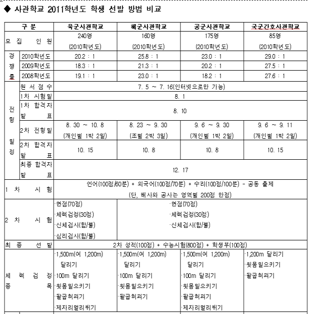 각군 사관학교 입시 가이드