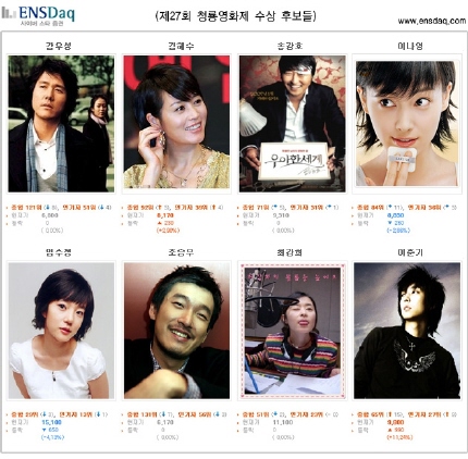 청룡영화제 수상 후보들의 현 주가는?