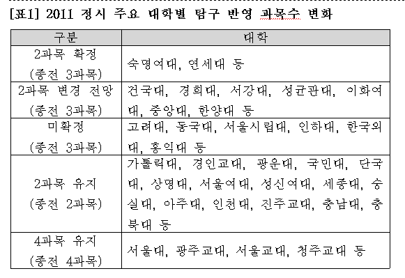 주요대 정시 탐구 2과목 반영 축소 전망