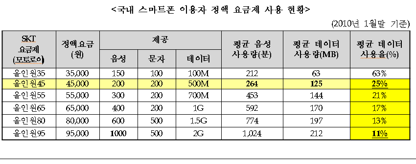 스마트폰 요금체계 '불합리'