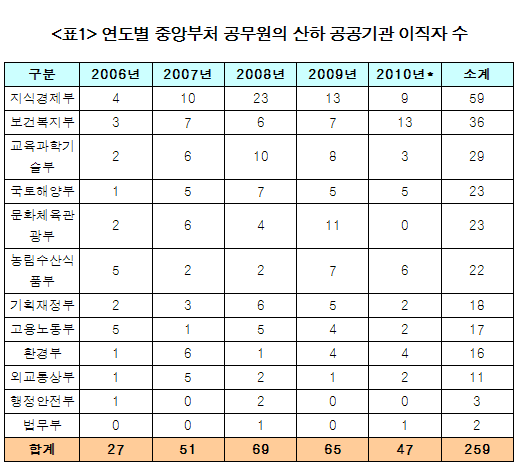 정부부처 제 식구 챙기기 위험수위 넘어