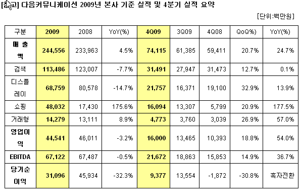 다음, 분기 매출 사상 최대 실적 달성