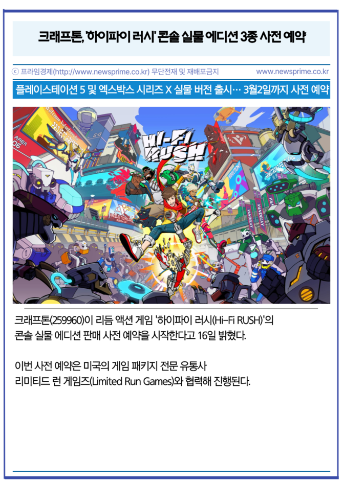 [카드] 크래프톤, '하이파이 러시' 콘솔 실물 에디션 3종 사전 예약