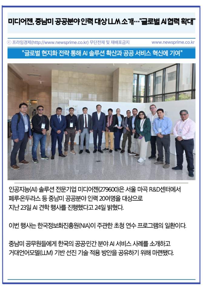 [카드] 미디어젠, 중남미 공공분야 인력 대상 LLM 소개…"글로벌 AI 협력 확대"