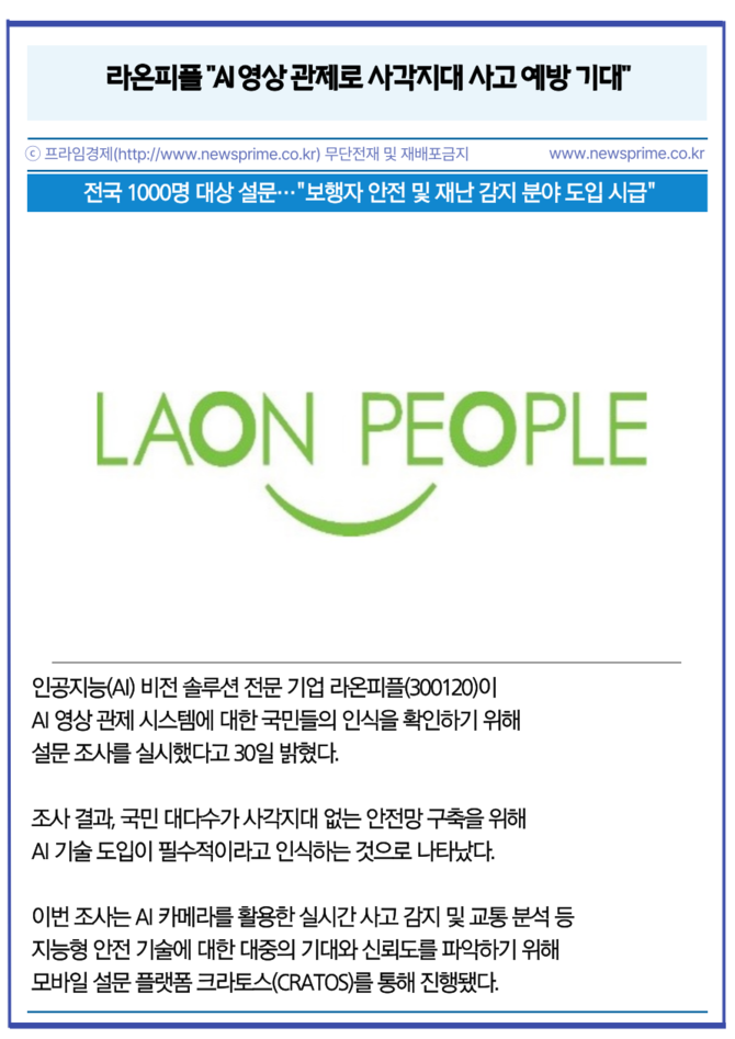 [카드] 라온피플 "AI 영상 관제로 사각지대 사고 예방 기대"
