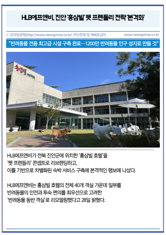 [카드] HLB에프앤비, 진안 '홍삼빌' 펫 프렌들리 전략 '본격화'
