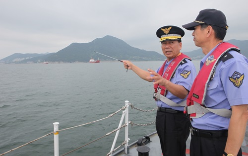 기름유출 '혼쭐' 여수해경서장 배타고 광양항 점검