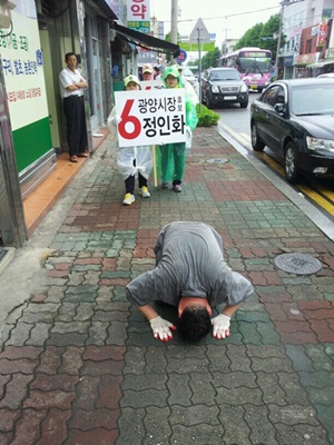 정인화 광양시장 후보 캠프 '3적(三賊)심판' 삼보일배