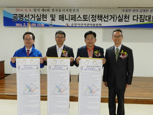 [포토] 순천시장 후보 3명 매니페스토 협약