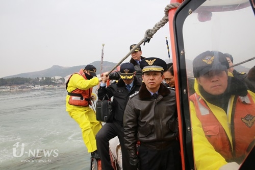 [포토] 해양경찰청장 여수 기름띠 현장 독려