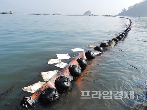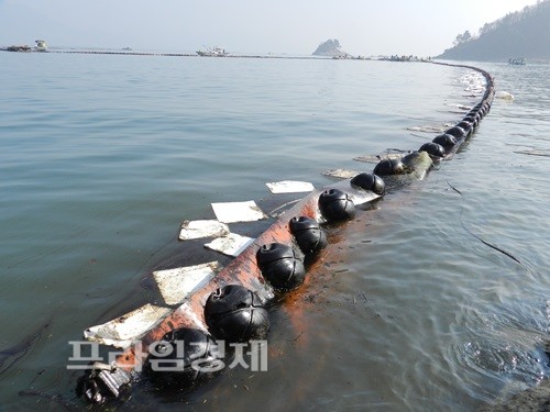 [포토] 여수 신덕마을 해변 갈라놓은 오일펜스