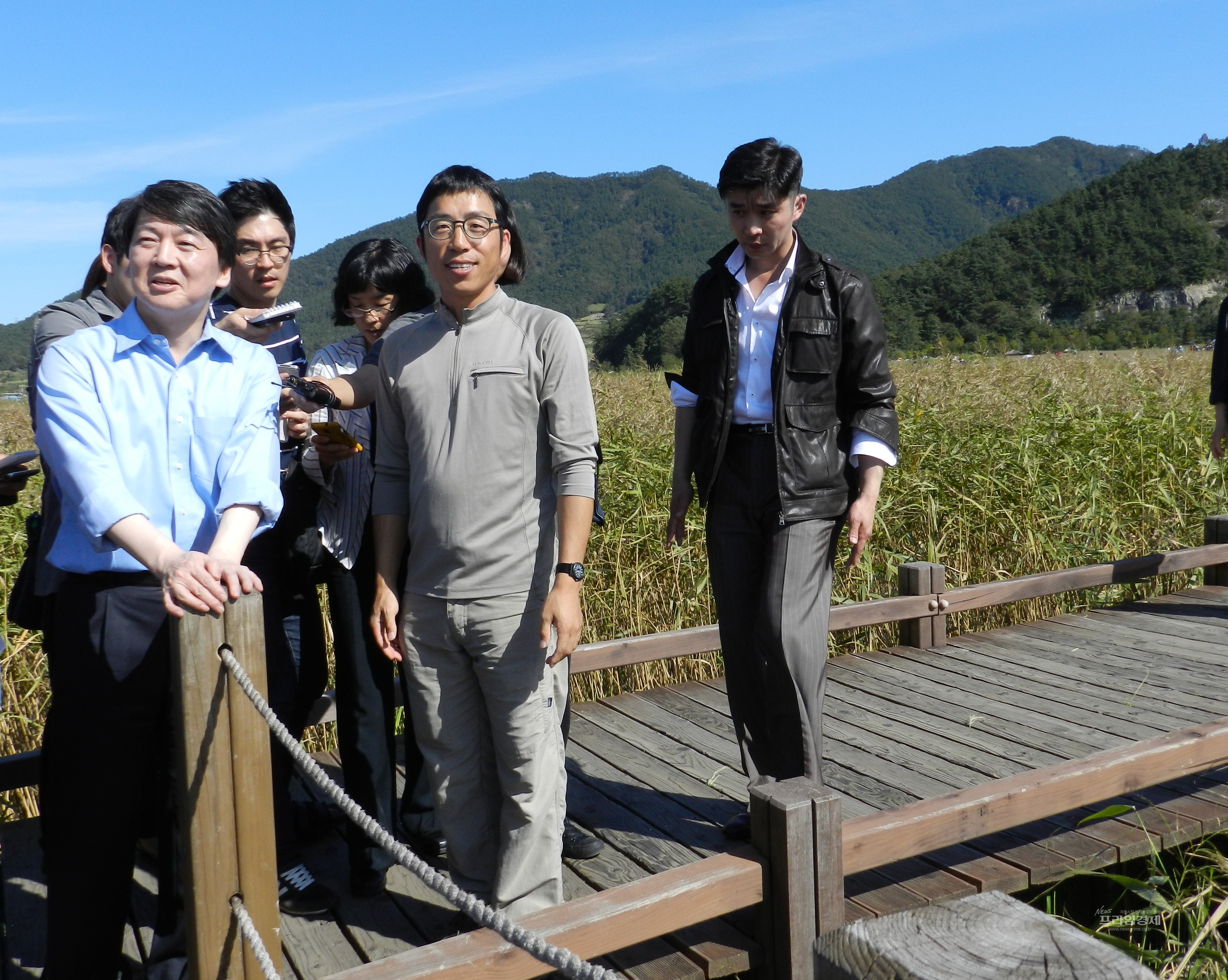 순천만 갈대 숲길 걷는 안철수